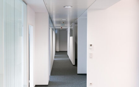 Eine Betonkernkühlung sorgt für ein angenehmes und energieeffizientes Raumklima, während die Fernwärme eine zuverlässige und nachhaltige Heizversorgung garantiert.